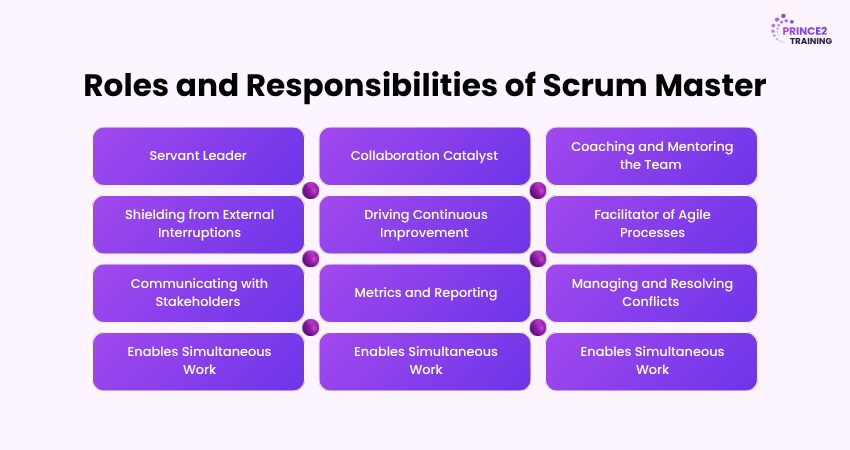 The Scrum Master ensures the team sticks to Scrum rules and values. They gently correct mistakes and keep the process on track. This helps avoid confusion and delays.