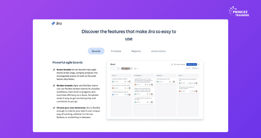 Jira is one of the most widely used Scrum Tools, offering powerful features for sprint planning, backlog management, issue tracking, and team collaboration. It allows Scrum Masters to create detailed user stories, track progress visually, and analyse team performance through comprehensive report.