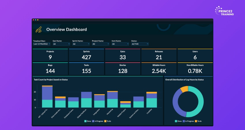 3) Task Boards (Scrum/Kanban): Visual boards show work in progress, completed tasks, and upcoming work.